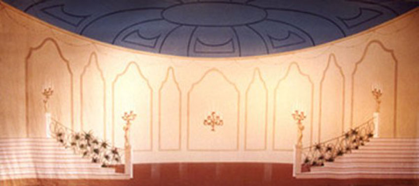 C – Backdrop has been rented several times and has mild cracking of the paint. Will have repairs and stains visible from closer distances and under certain lighting. Usable for most venues and can be improved with proper lighting. Best used on stage and some distance from the audience.