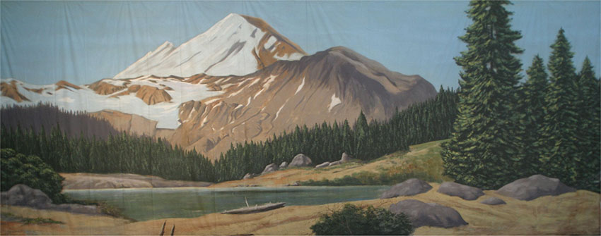 B – In newer condition with minor wear which may include repairs and cracking in some of the painted areas. May show fading in darker areas of drop. Backdrop is usable for all venues.