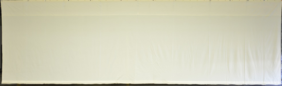 This item is blank and unpainted, perfect for you to design your own backdrop! Item has a few white vertical streaks and one small repair on the middle. It has some light dirt stains, as well. Still in very good condition.
